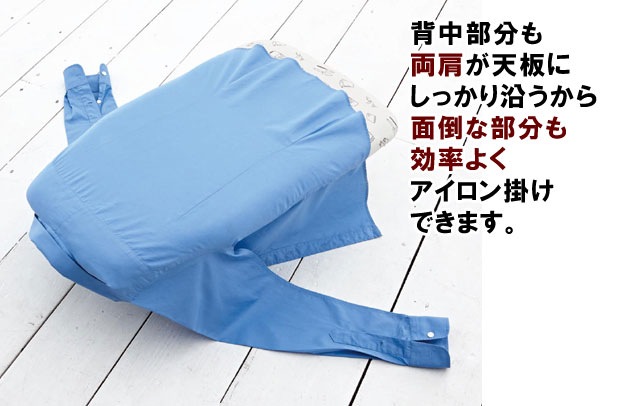 前身頃と後身頃にピタッと沿うからアイロン掛けしやすい設計です。