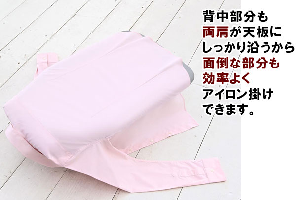 前身頃と後身頃にピタッと沿うからアイロン掛けしやすい設計です。